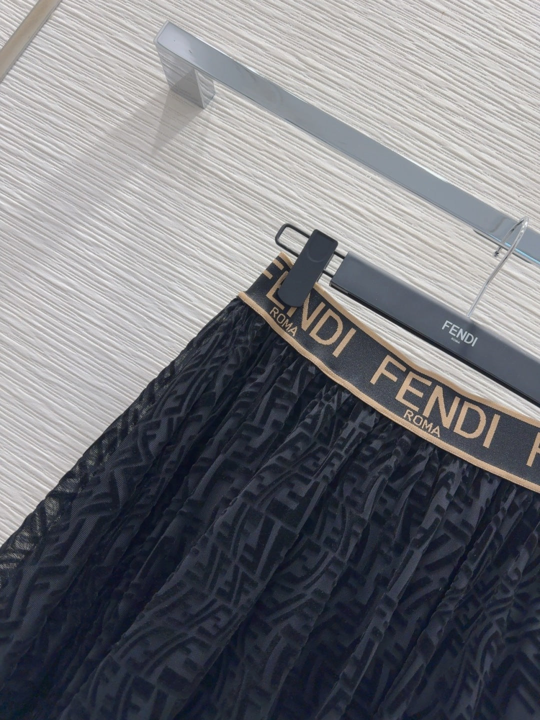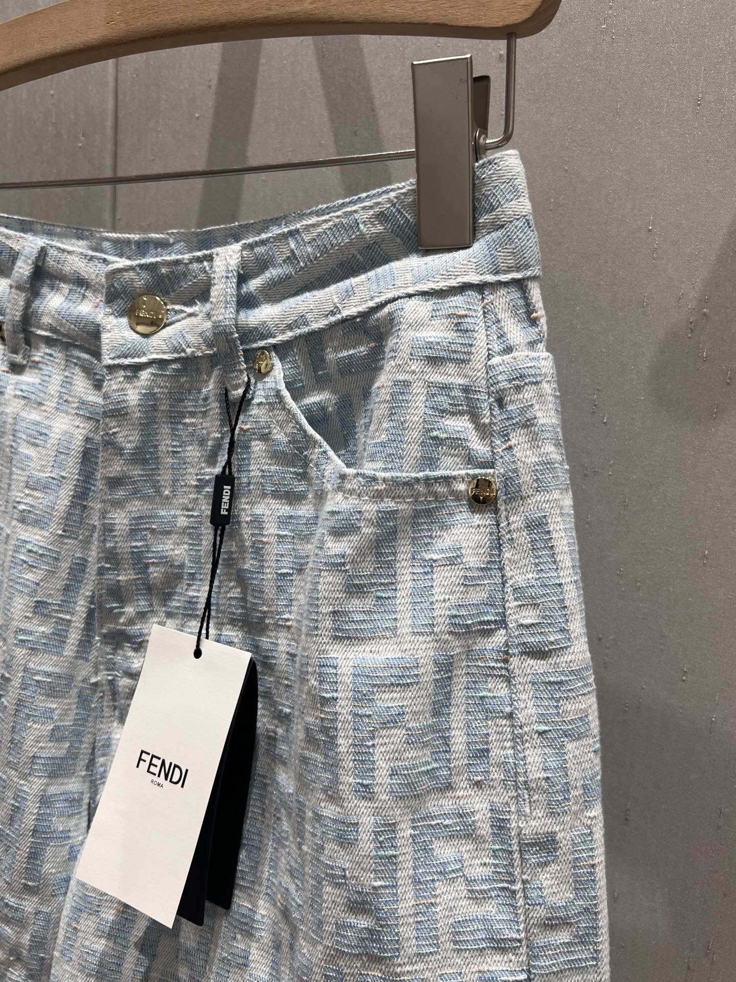 Fendi 2025 Pleated Denim Skirt Blue Cotton