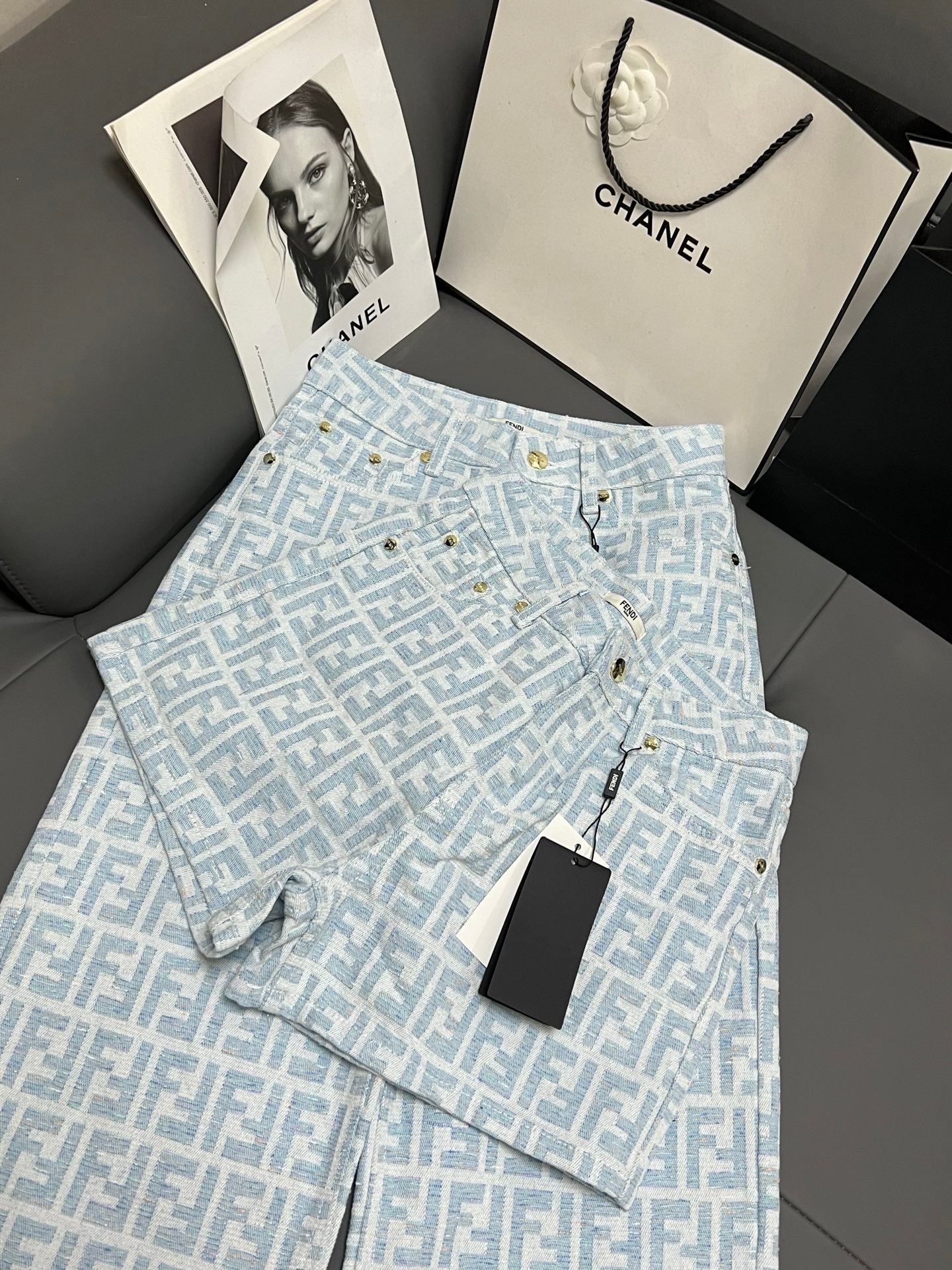 Fendi 25 Denim Short Light Blue Cotton 212681