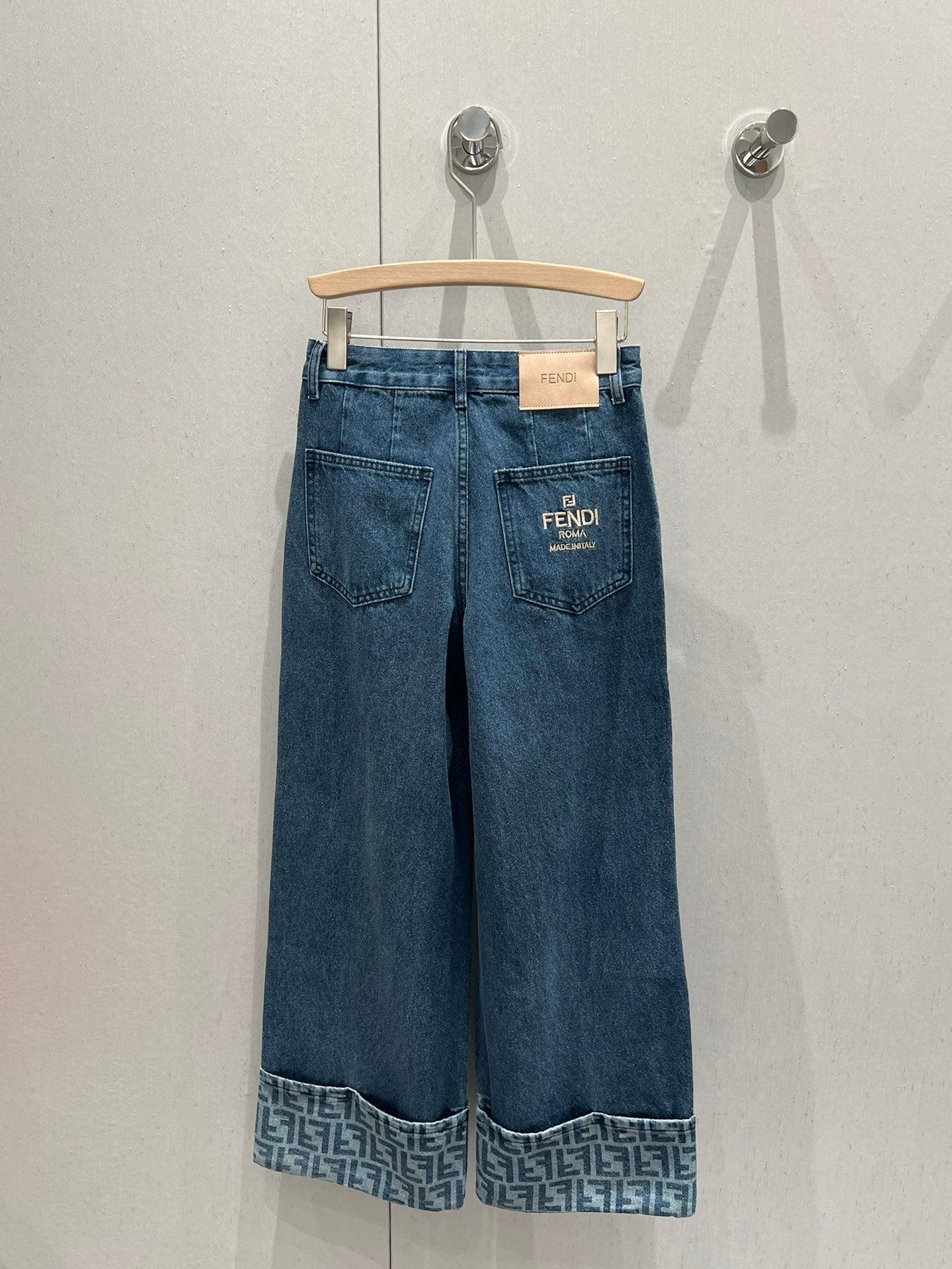 Fendi 25 Denim Scimitar Pants Dark Blue Cotton