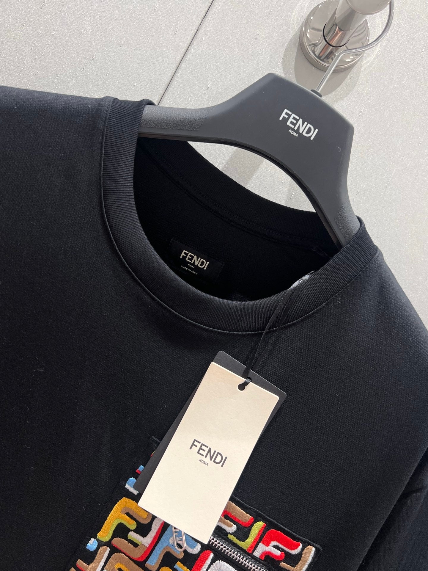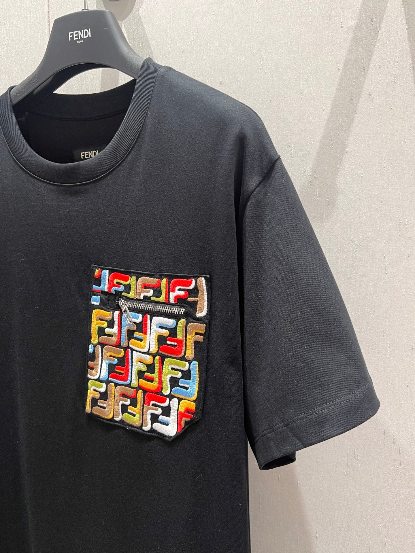 Fendi Embroidered Beaded T-shirt Black White Cotton