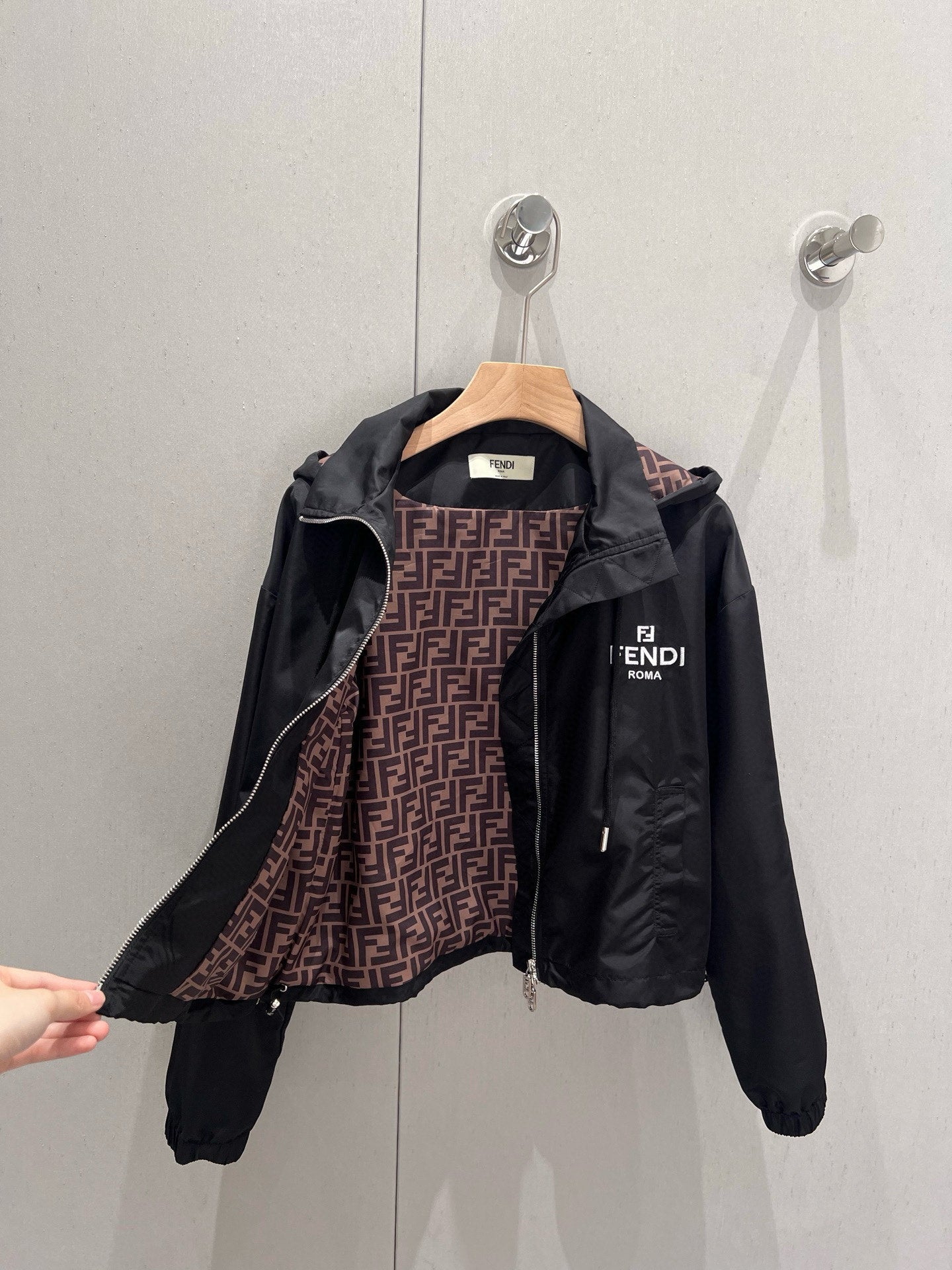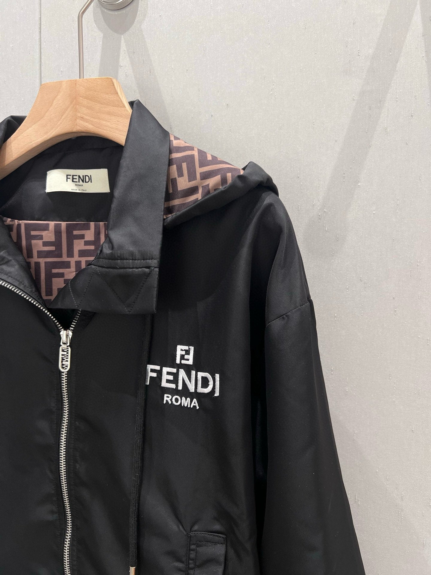 Fendi 25 Windbreaker Jacket Black White Cotton