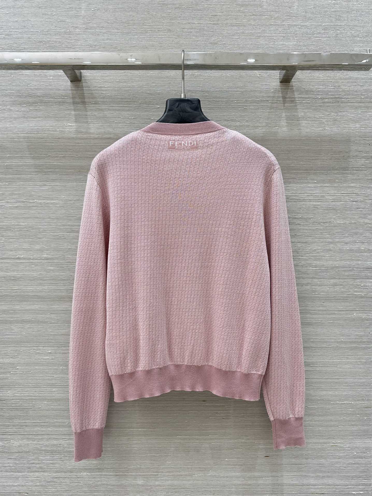 Fendi Beaded Flower V-neck Knitted Small Top Pink Wool