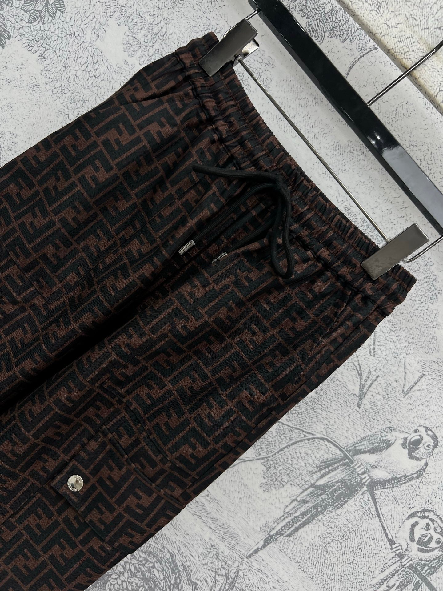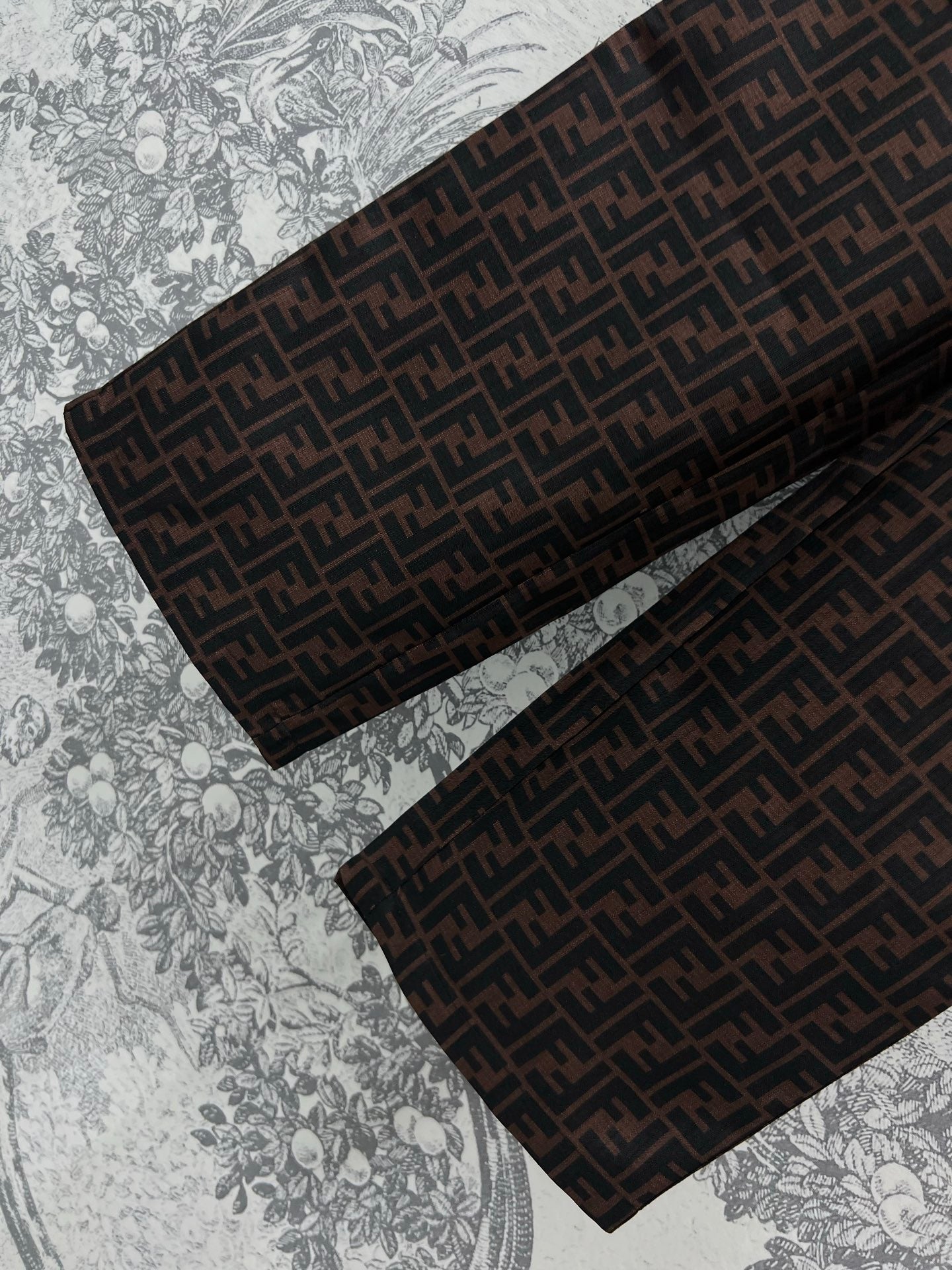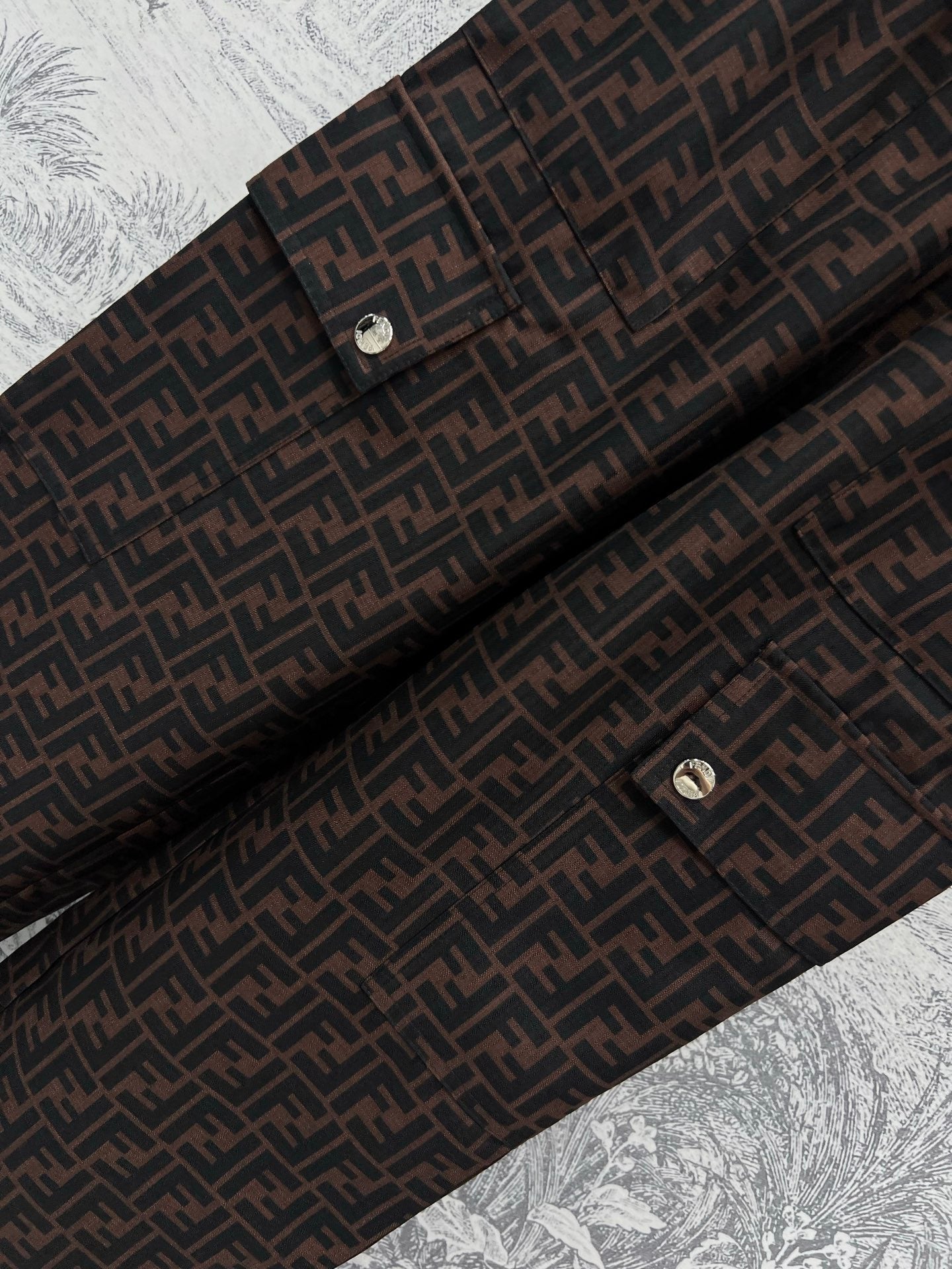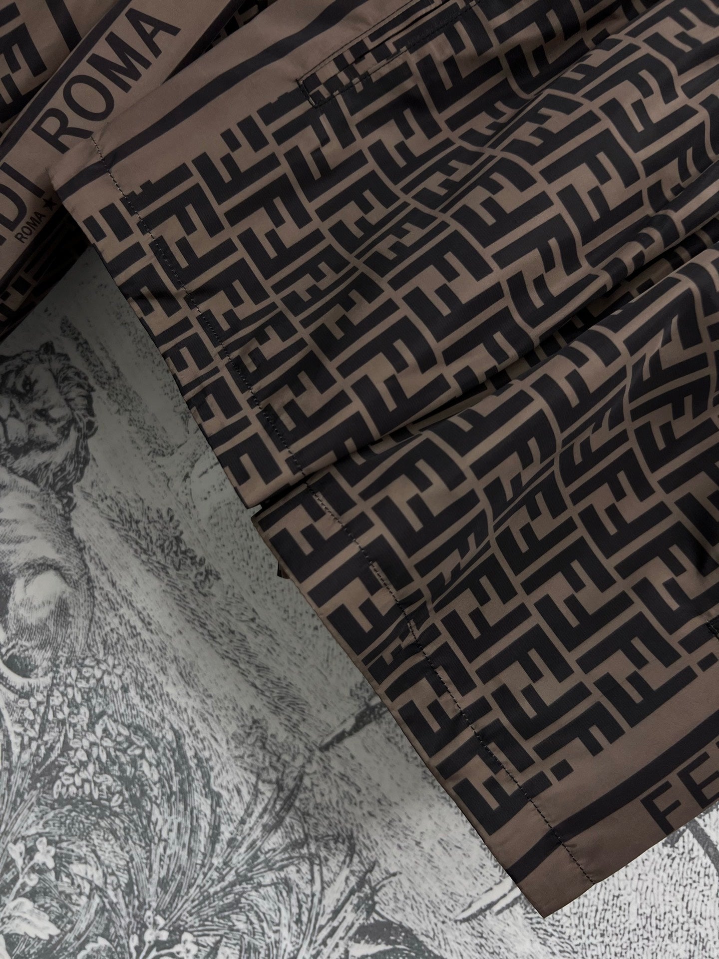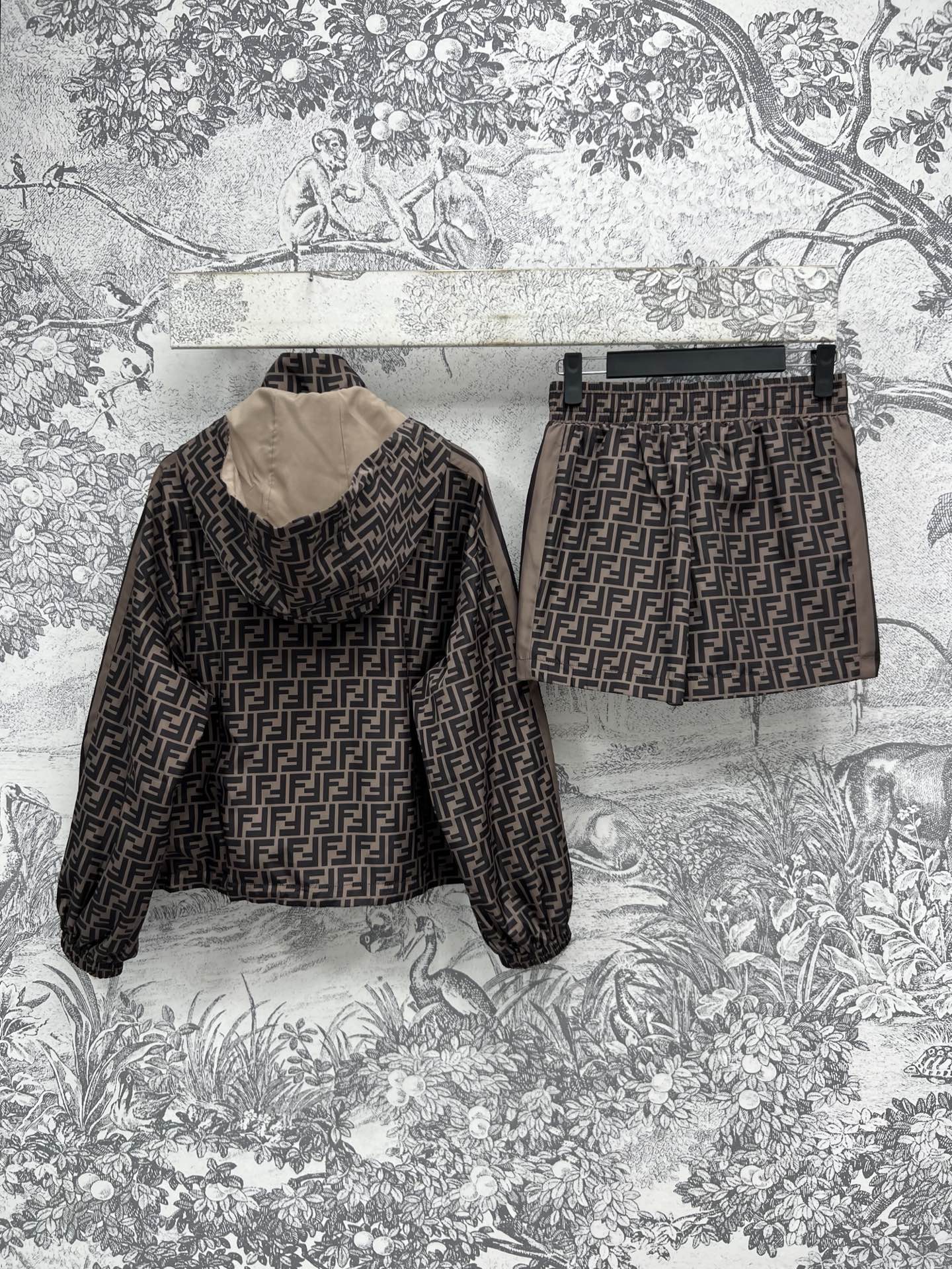 Fendi Hooded Jacket Set Beige Silk Fabric