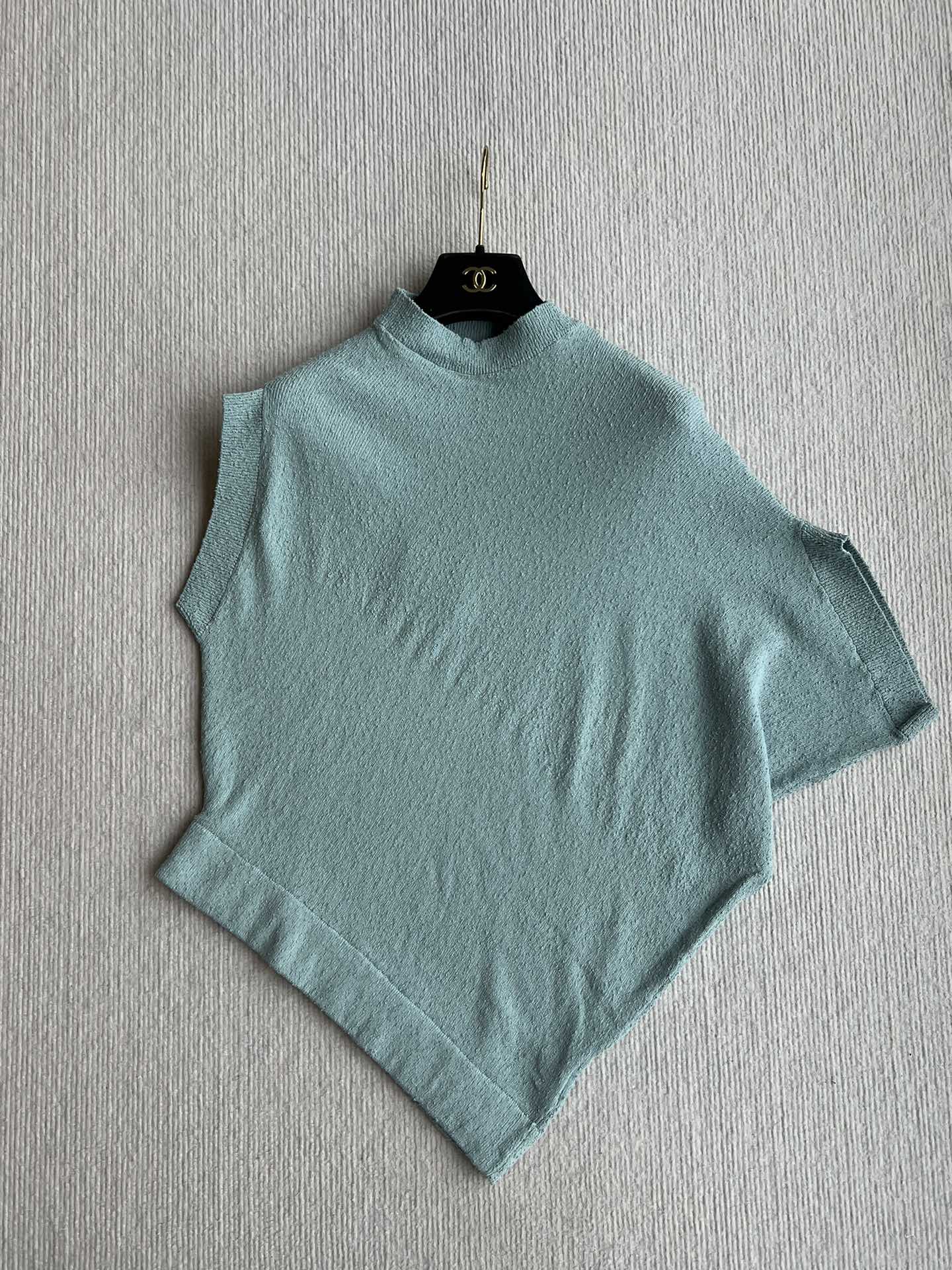 Fendi 25 Asymmetric Hem Cape-sleeved Crewneck Jumper Ice Blue Viscose