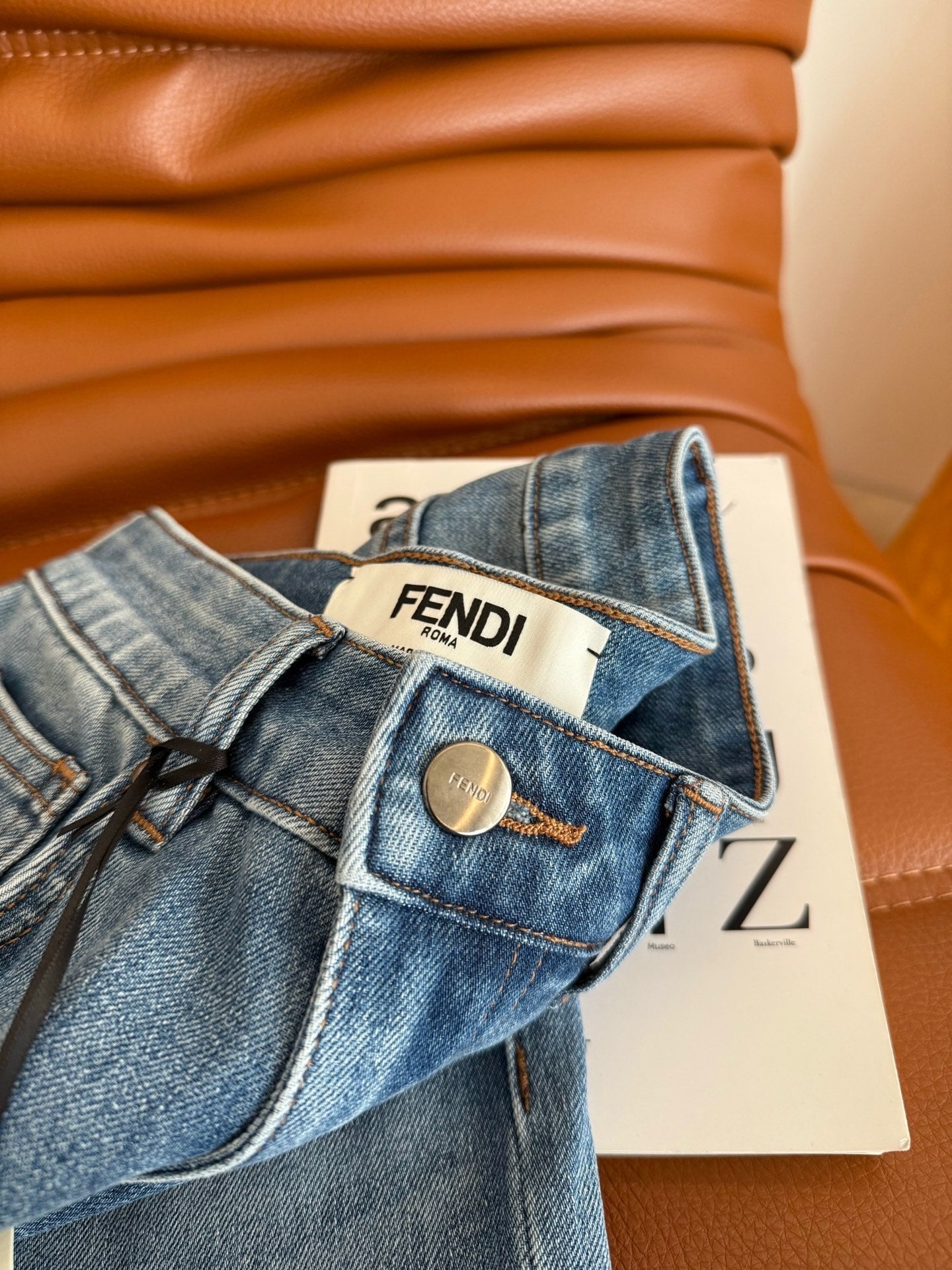 Fendi 25 Colorful Yarn Embroidered Letter Jeans Blue Cotton
