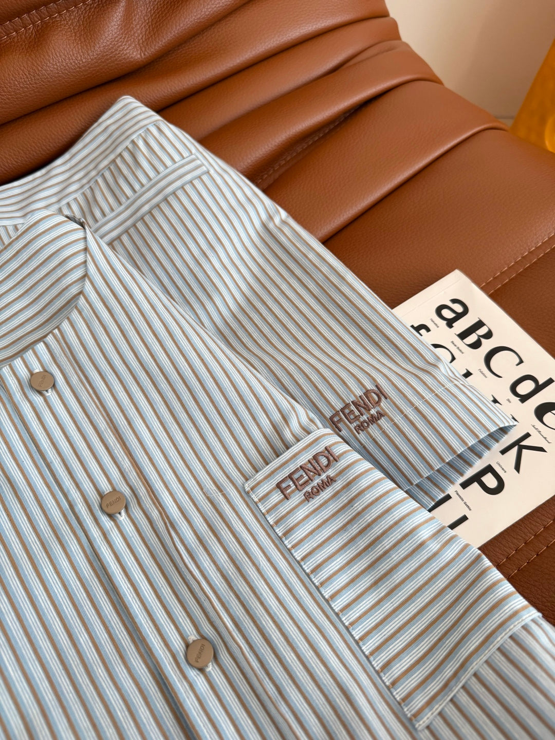 Fendi 25 Letter Logo Embroidered Striped Suit Blue Cotton