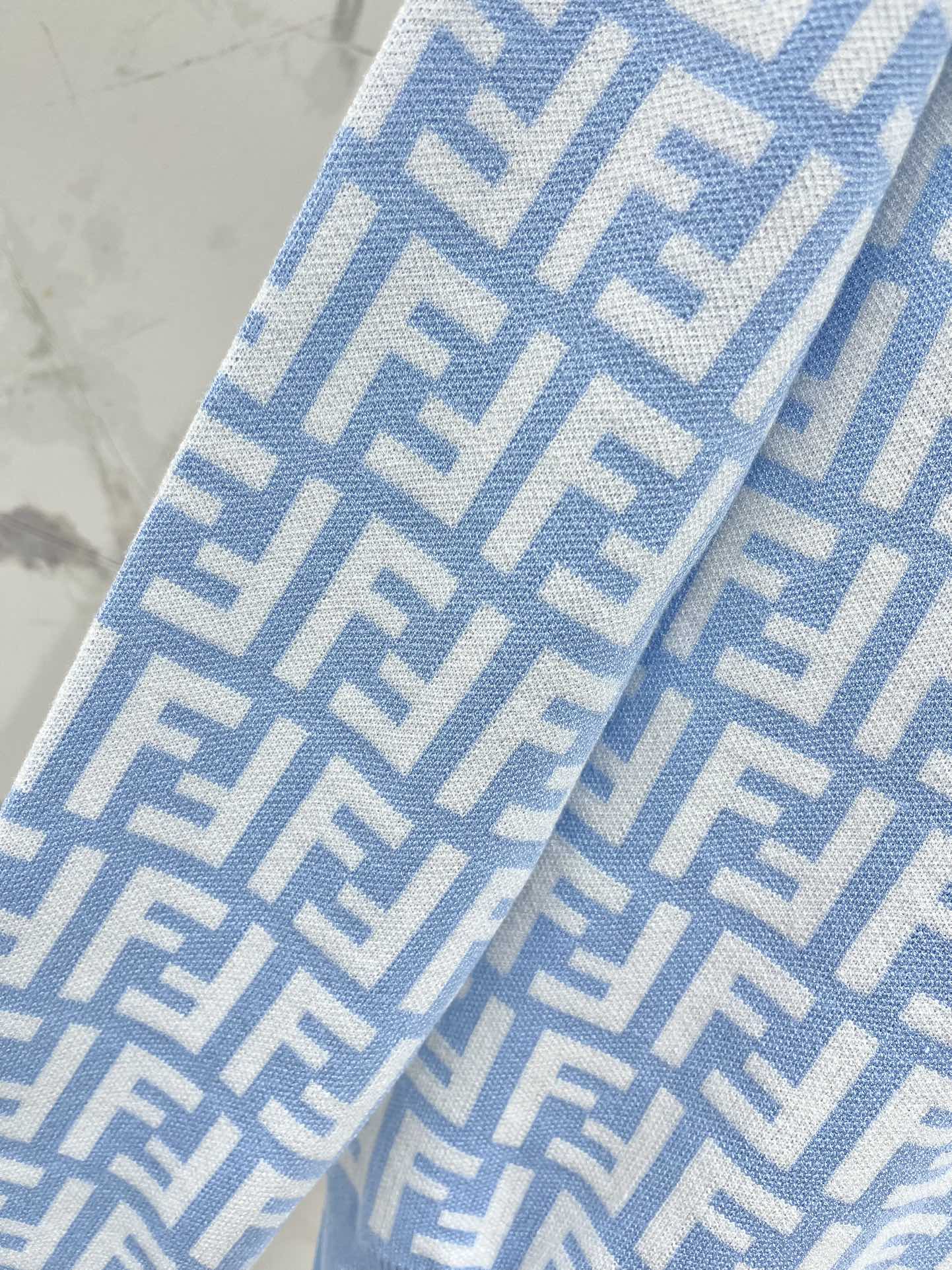 Fendi Double f Letter Knitted Cardigan Blue Wool