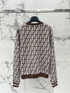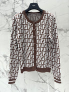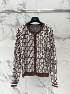 Fendi Double f Letter Knitted Cardigan Brown Wool