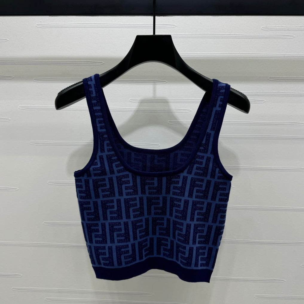 Fendi 25 Knitted Round Neck Short Sleeves Blue Wool F155