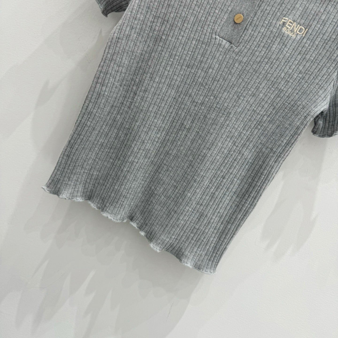 Fendi 25 Knitted Round Neck Short Sleeves Gray Wool F155