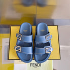 FENDI BAGUETTE DAD SANDALS IN CERULEAN BLUE CALFSKIN