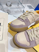 FENDI CASUAL SNEAKER IN TAN BEIGE CALFSKIN AND HEATHER PURPLE SUEDE