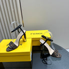 FENDI DELFINA HIGH-HEELED 10 CM SANDAL IN BROWN MONOGRAM FF CANVAS