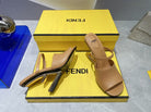 FENDI FIRST 95 MM HIGH-HEELED SANDAL IN CAMEL BROWN LAMBSKIN GOLD HARDWARE