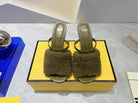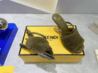 FENDI FIRST HIGH HEEL 95 MM SANDAL IN OLIVE GREEN MINK FUR