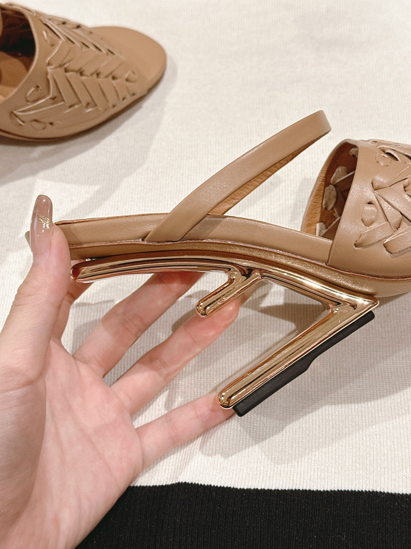 FENDI FIRST HIGH-HEELED SANDALS 85 MM IN TUSCAN TAN LAMBSKIN GOLD HARDWARE