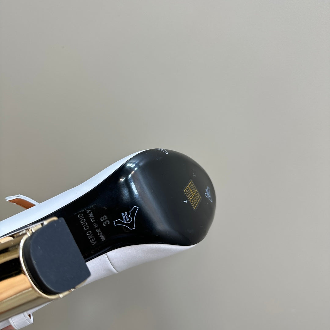 FENDI HIGH-HEELED 85 MM IN WHITE LAMBSKIN WITH GOLD HARDWARE
