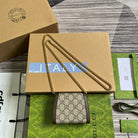 BLONDIE INTERLOCK MINI SHOULDER BAG 12 IN BEIGE CANVAS AND DARK BROWN CALFSKIN TRIM