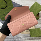 CONTINENTAL WALLET 19 IN PINK EMBOSSED CALFSKIN GOLD HARDWARE