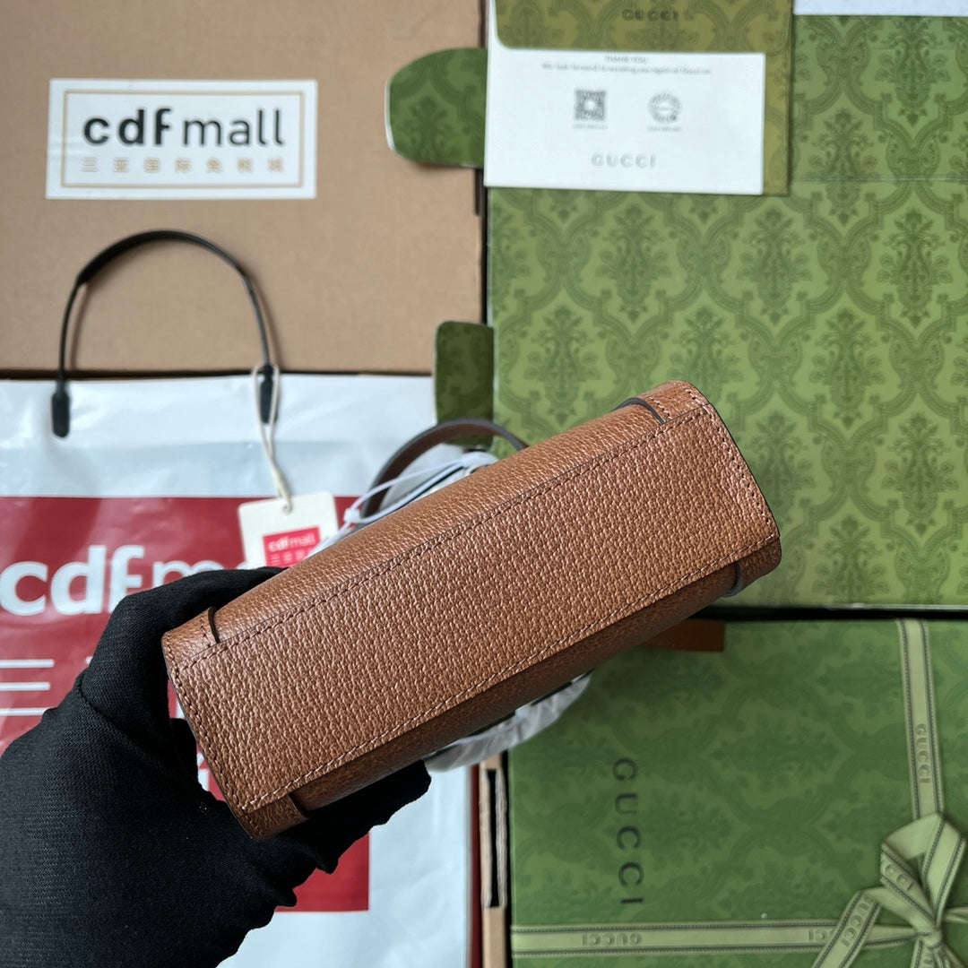 DIANA TOTE BAG 19 IN BROWN LAMBSKIN WITH BAMBOO HANDLE