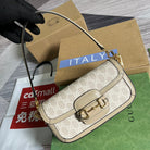 GG HORSEBIT 1955 BAG 24 IN WHITE CANVAS AND BEIGE CALFSKIN