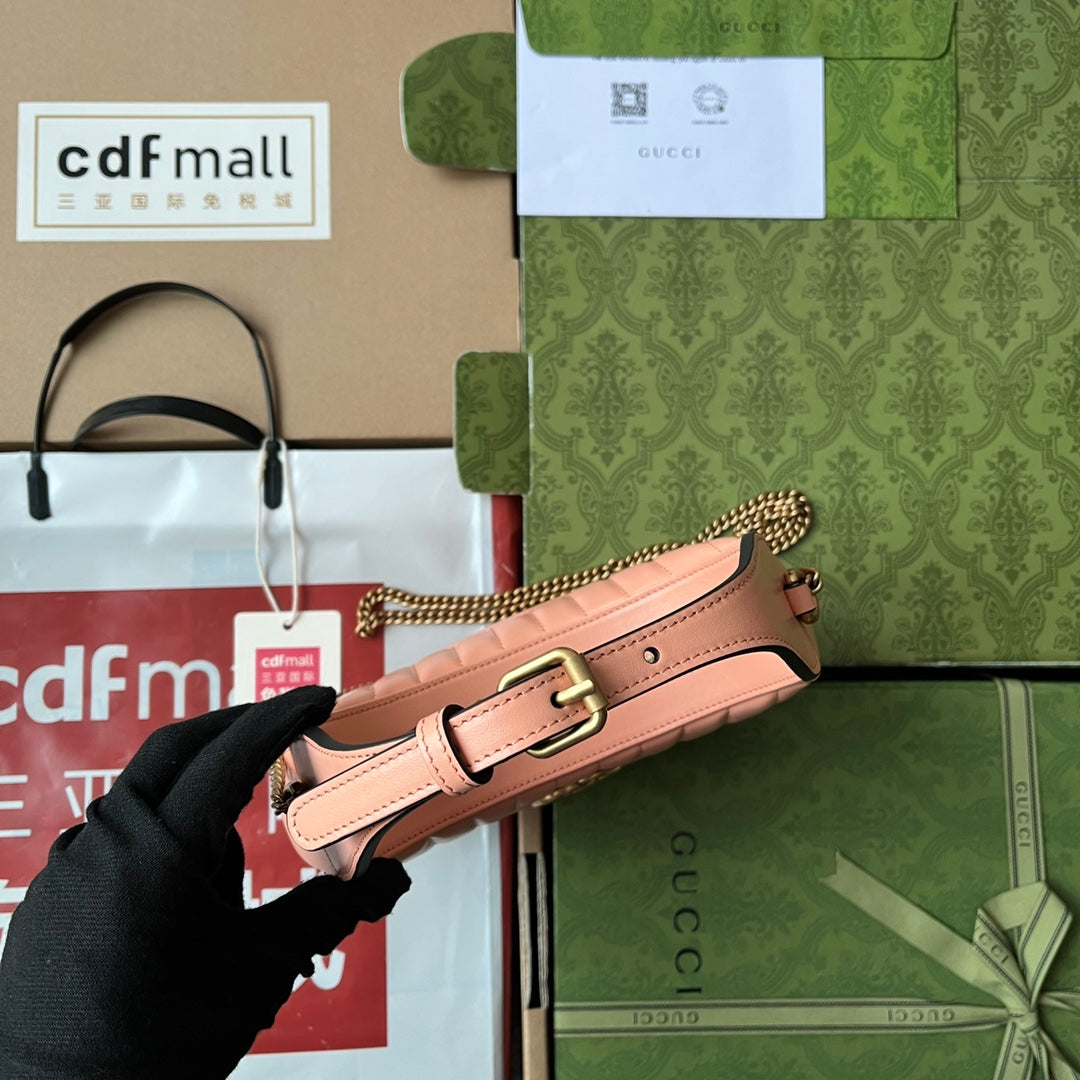 gg marmont half-moon shaped 21cm peach calfskin gold hardware