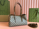 Gucci GG Emblem Small Tote Bag Beige Ebony Leather