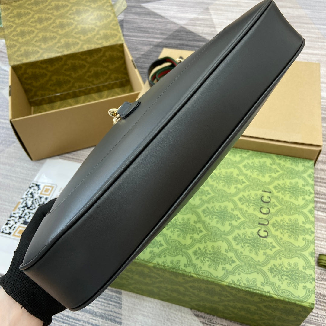 JACKIE MEDIUM SHOULDER BAG 35 IN BLACK CALFSKIN GOLD HARDWARE