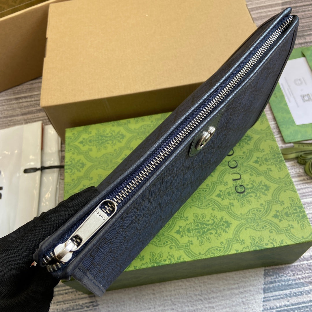 OPHIDIA GG POUCH 28 BLUE AND DARK BLUE CANVAS