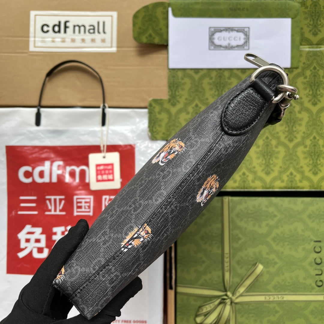 TIGER PRINT MESSENGER BAG 28 IN BLACK CANVAS AND LEATHER TRIM