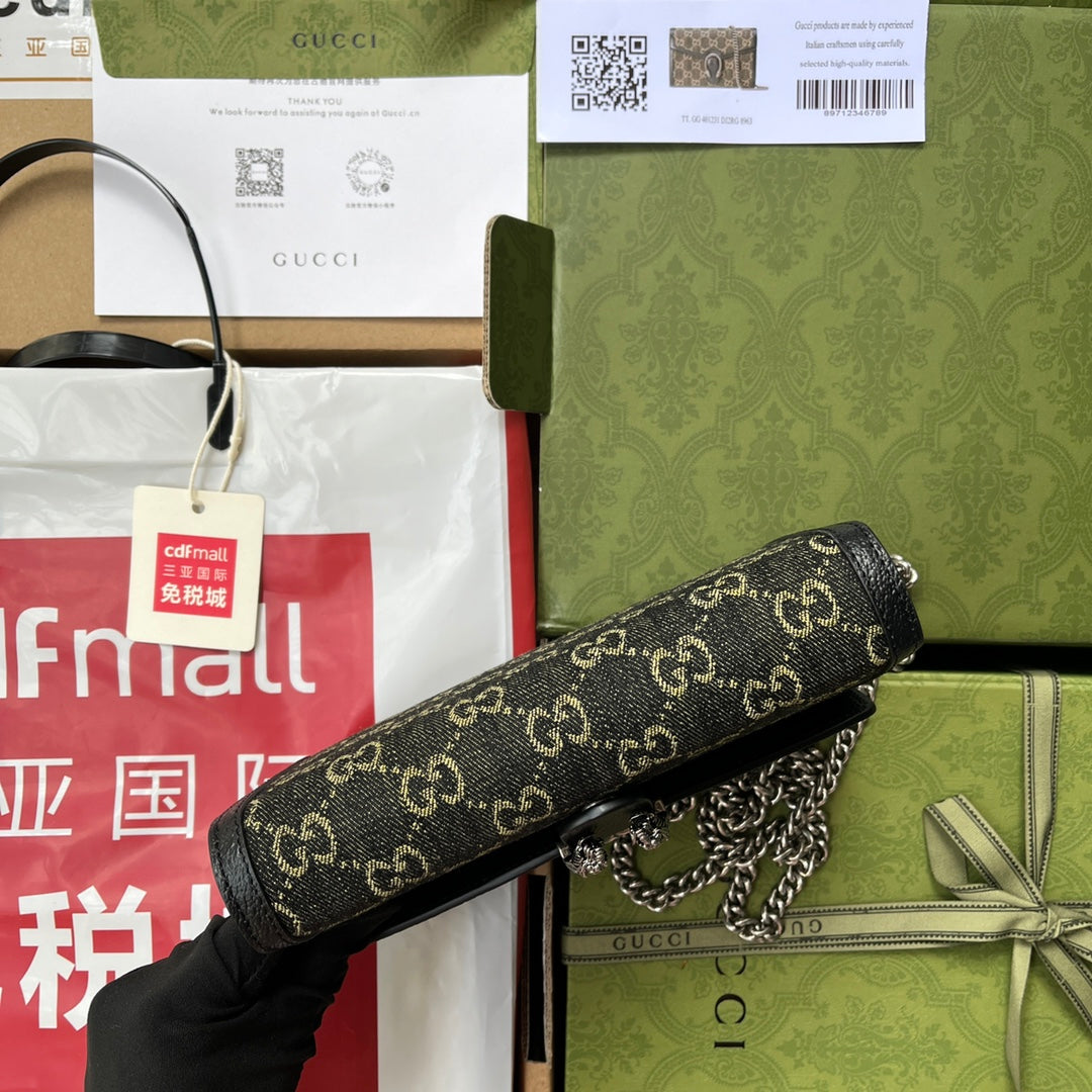 OPHIDIA MINI BAG 18 IN DARK BLUE MONOGRAM CANVAS AND BLACK LAMBSKIN TRIM