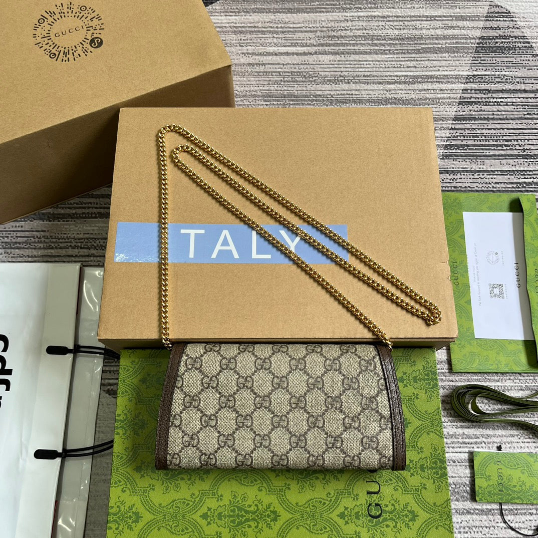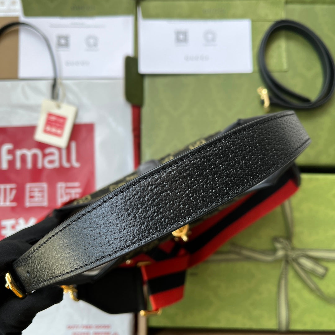 OPHIDIA MINI BUCKET BAG 18 WITH WEB IN BEIGE EBONY CANVAS MIX BROWN CALFSKIN