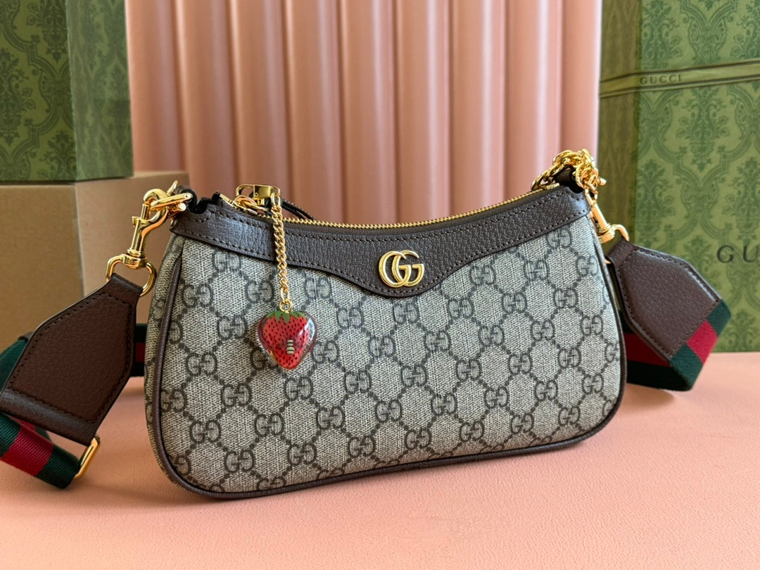 GG Ophidia Small Shoulder Bag 21cm Beige Dark Brown Canvas