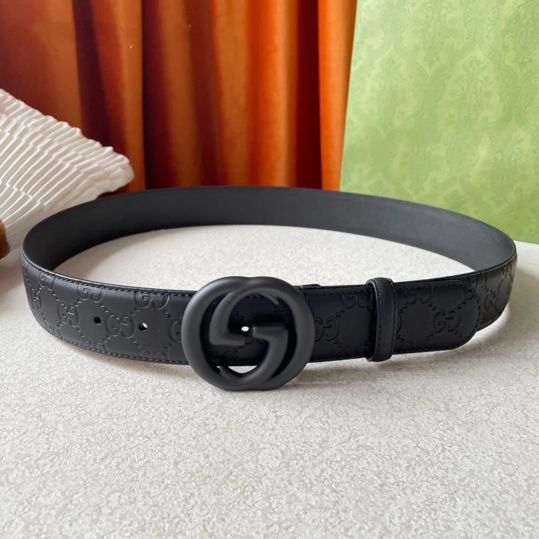 DOUBLE G BLACK BUCKLE 40MM BLACK EMPREINTE LEATHER