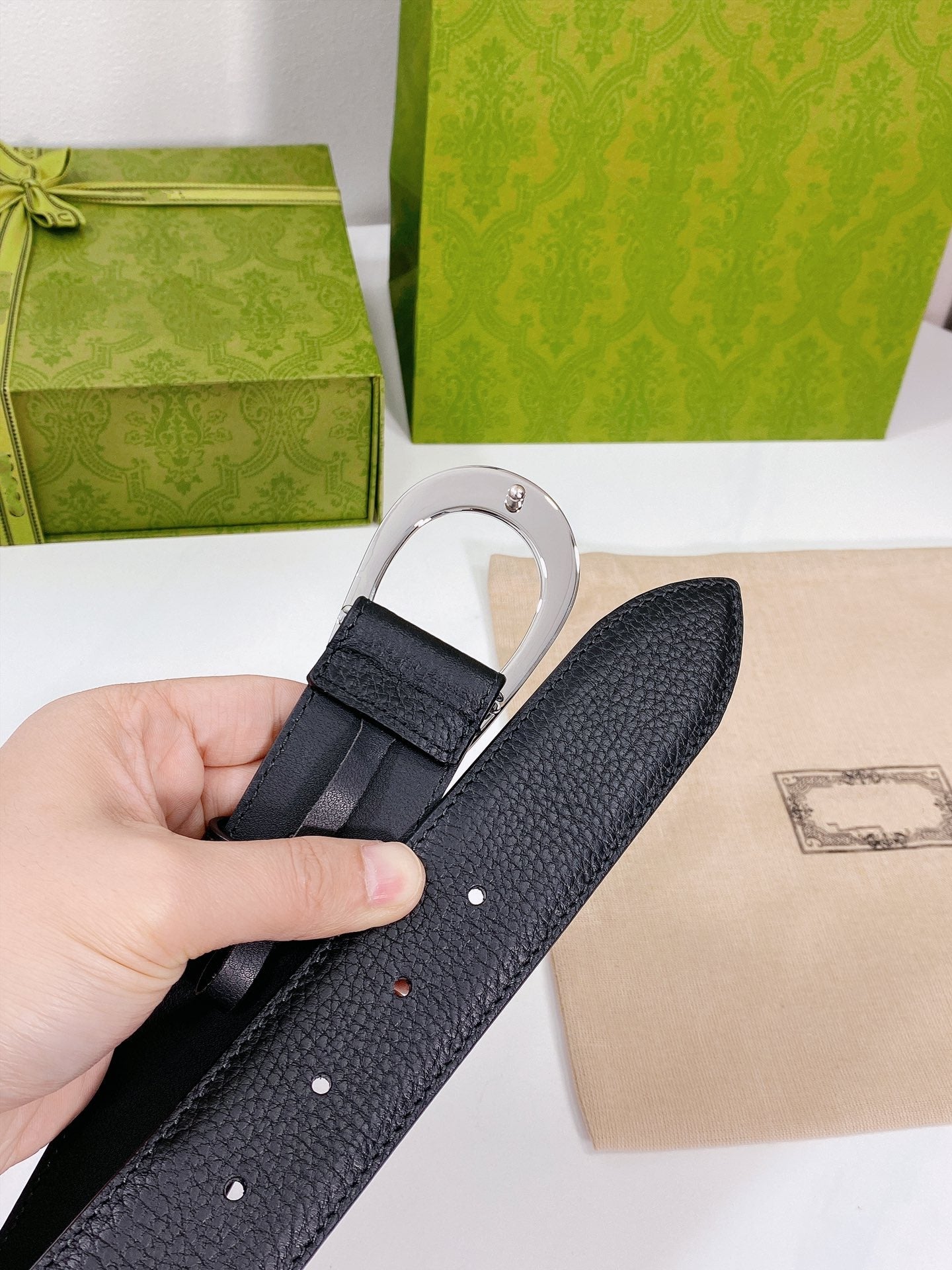 G BELT SILVER BUCKLE BLACK LEATHER 4.0CM