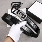 G BELT SILVER BUCKLE CROCODILE POLISHED BLACK 3.8CM