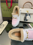 GG LOAFER IN WHITE MIX LIGHT PINK CALFSKIN WITH BEIGE WOOL LINING