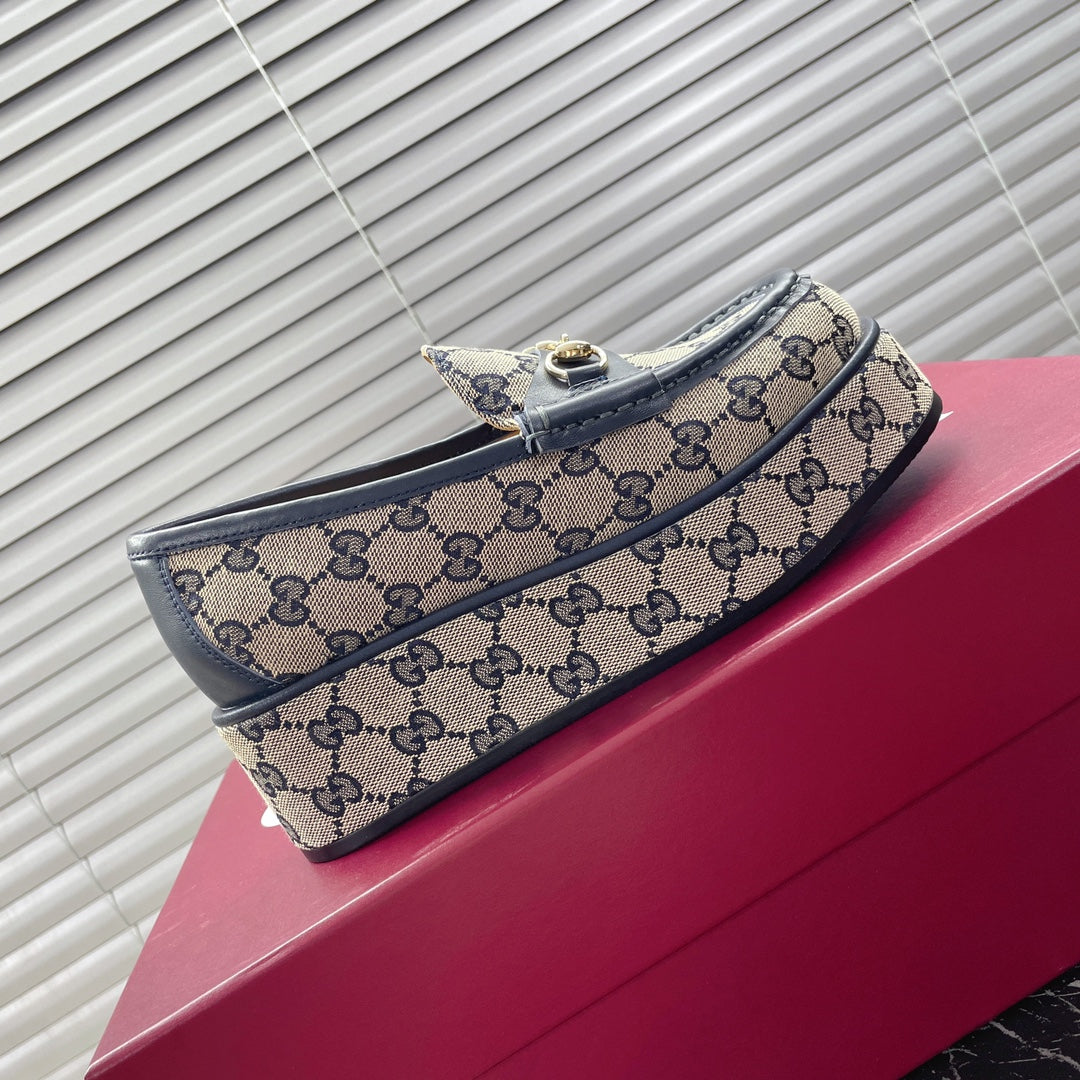 GG LOAFER IN BLUE JACQUARD MIX WHITE CALFSKIN WITH BEIGE WOOL LINING
