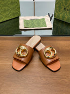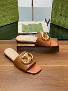 FLAT MULE IN BRONE BROWN CALFSKIN