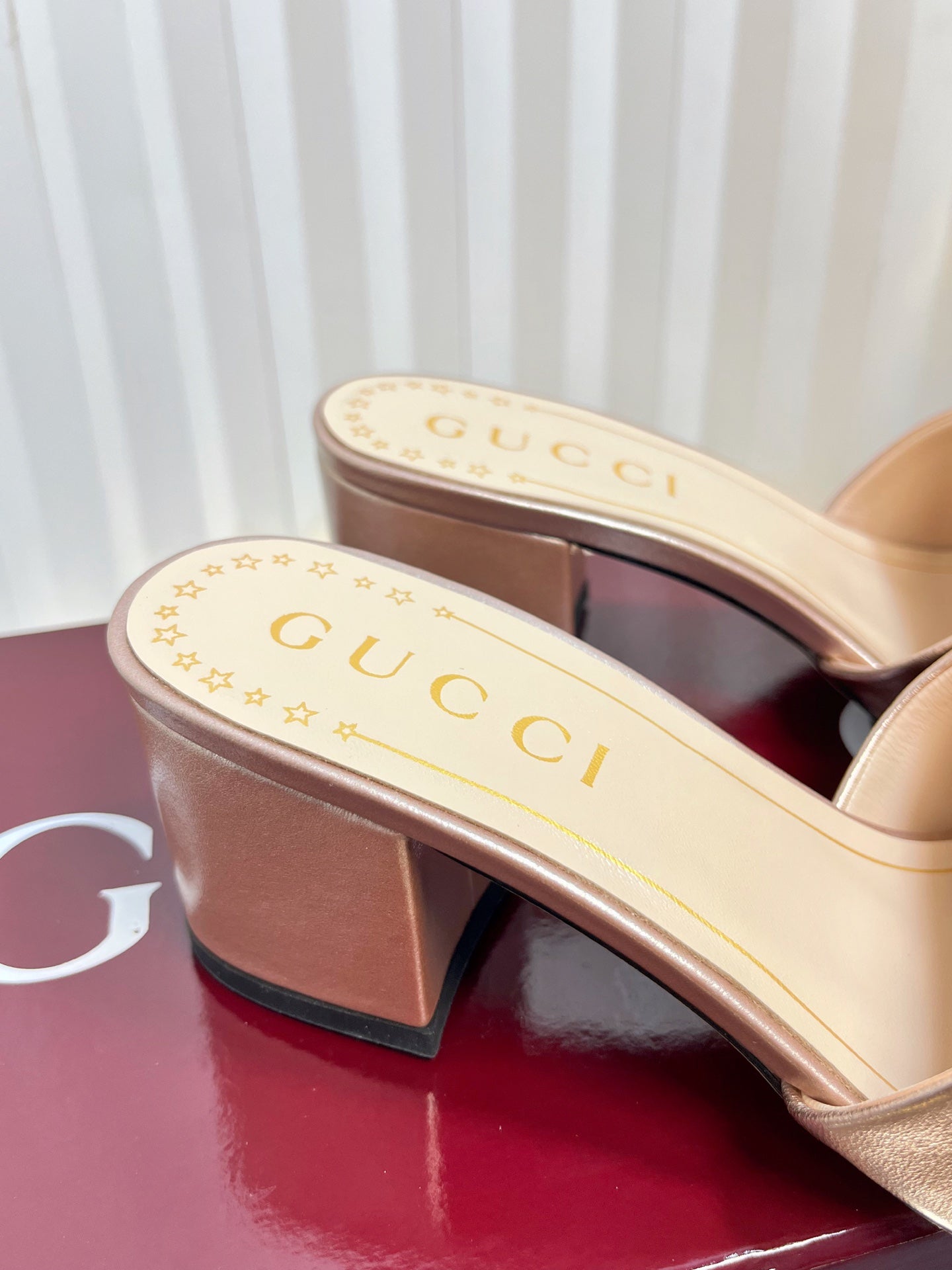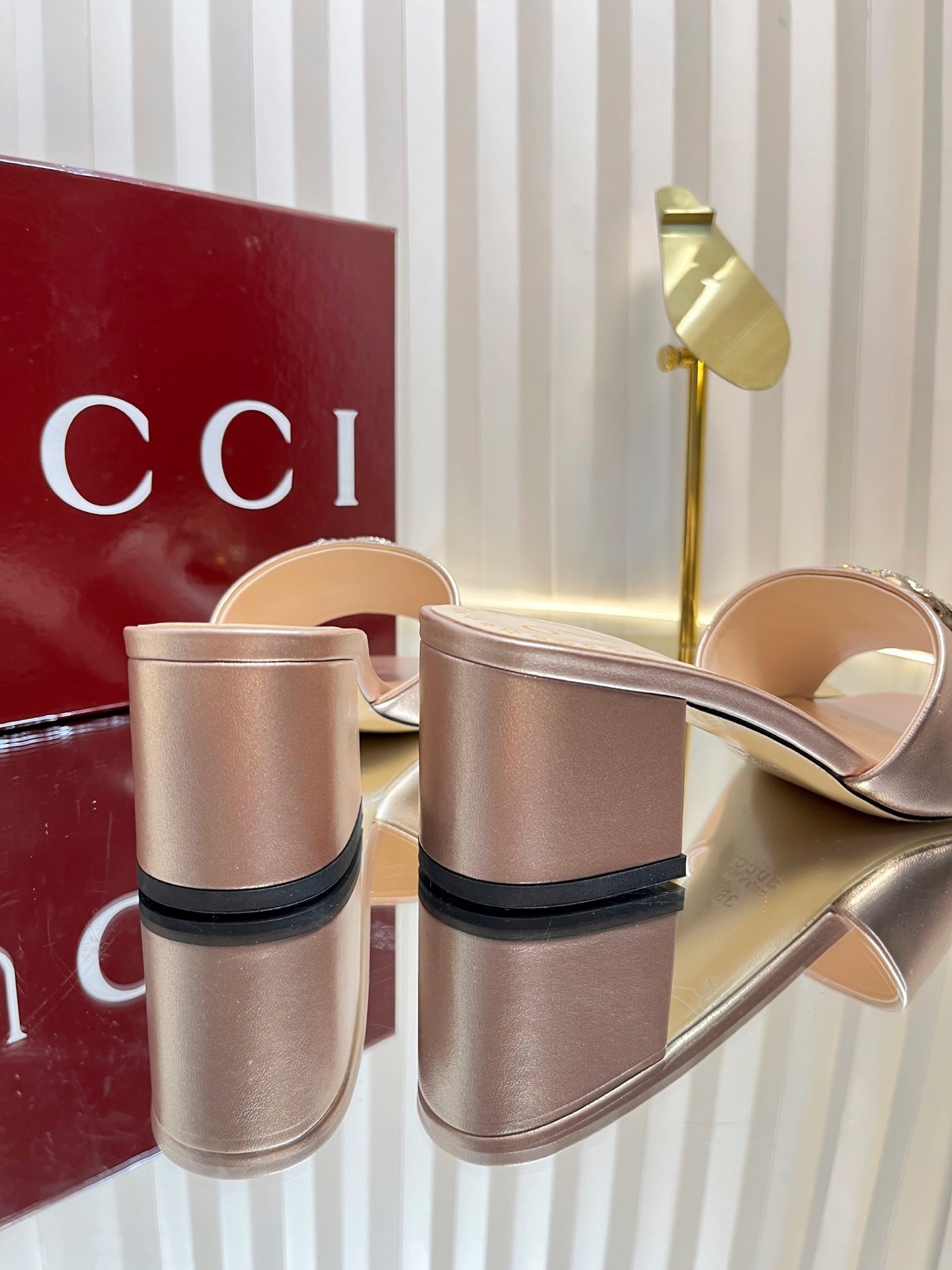 GC 25 Interlocking G Heeled Sandal Nude Patent Leather 294640