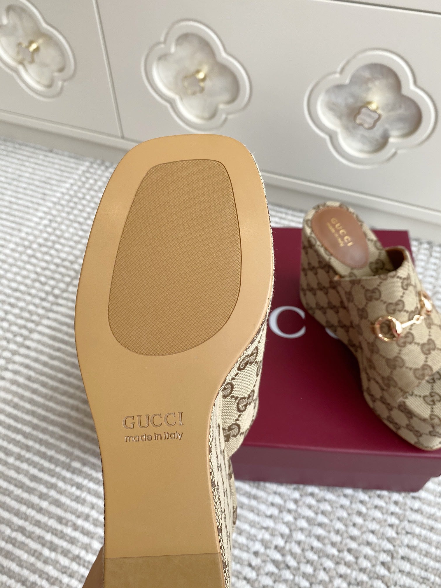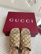 GC 25 Wedge With Horsebit Sandal Beige and Dark Brown Canvas 291029