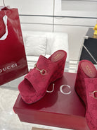 GC Wedge With Horsebit Sandal Red Canvas 292422