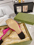 GG SPARKLE CRYSTAL SLIDE SANDAL METALLIC PINK CALFSKIN