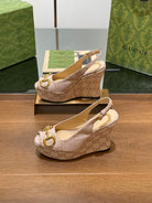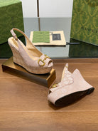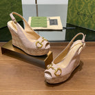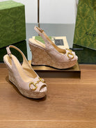 GG WEDGE PLATFORM IN ALMOND BEIGE MONOGRAM JACQUARD FABRIC
