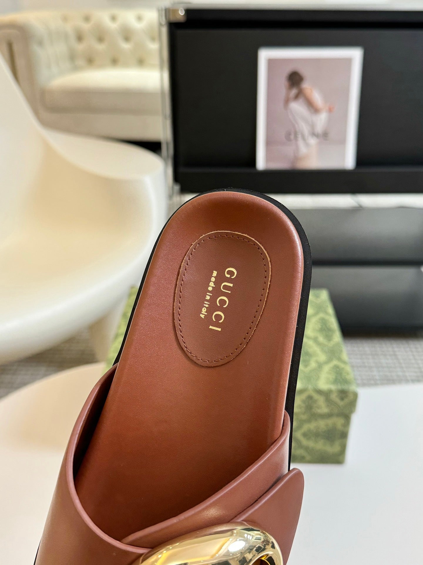 WOMEN'S SLIPPER IN BRONZE BROWN CALFSKIN