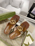 GC 2025 Double G Block Heel Thong Sandals brown Leather 292411