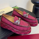 GC 2025 Horsebit Wedge Loafer Red Canvas Cowhide 296842