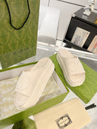 GC 25 Interlocking G 50mm Slide Sandal Ivory Cowhide 292379