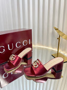 GC 25 Interlocking G Heeled Sandal Red Patent Leather 294638