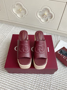 GC 25 Interlocking G Sandal Red Burgundy Cord Cowhide 291033